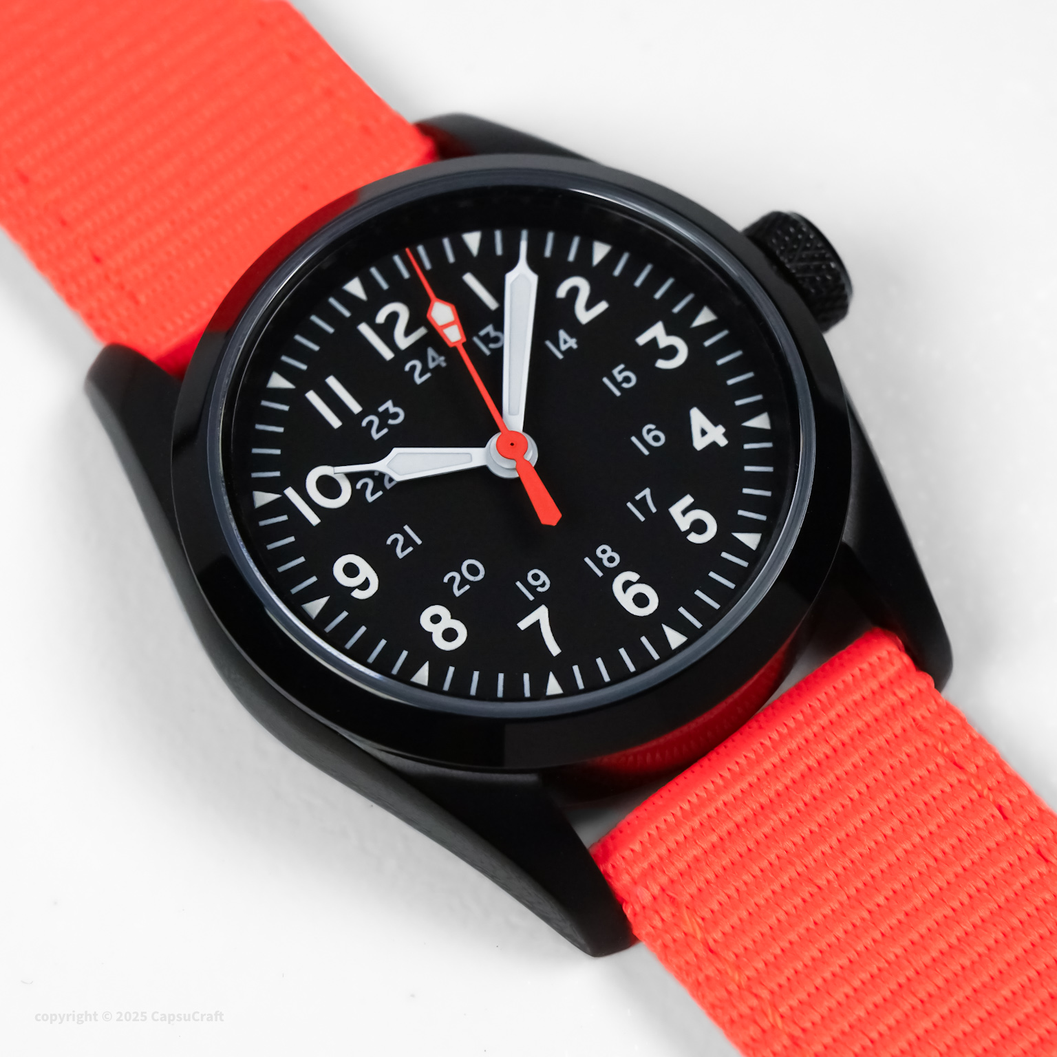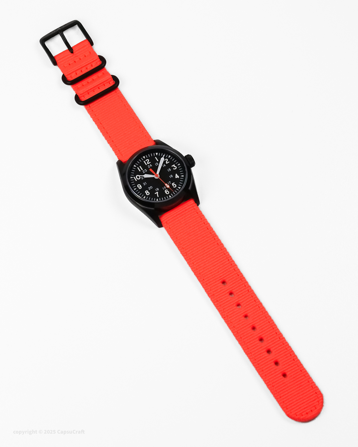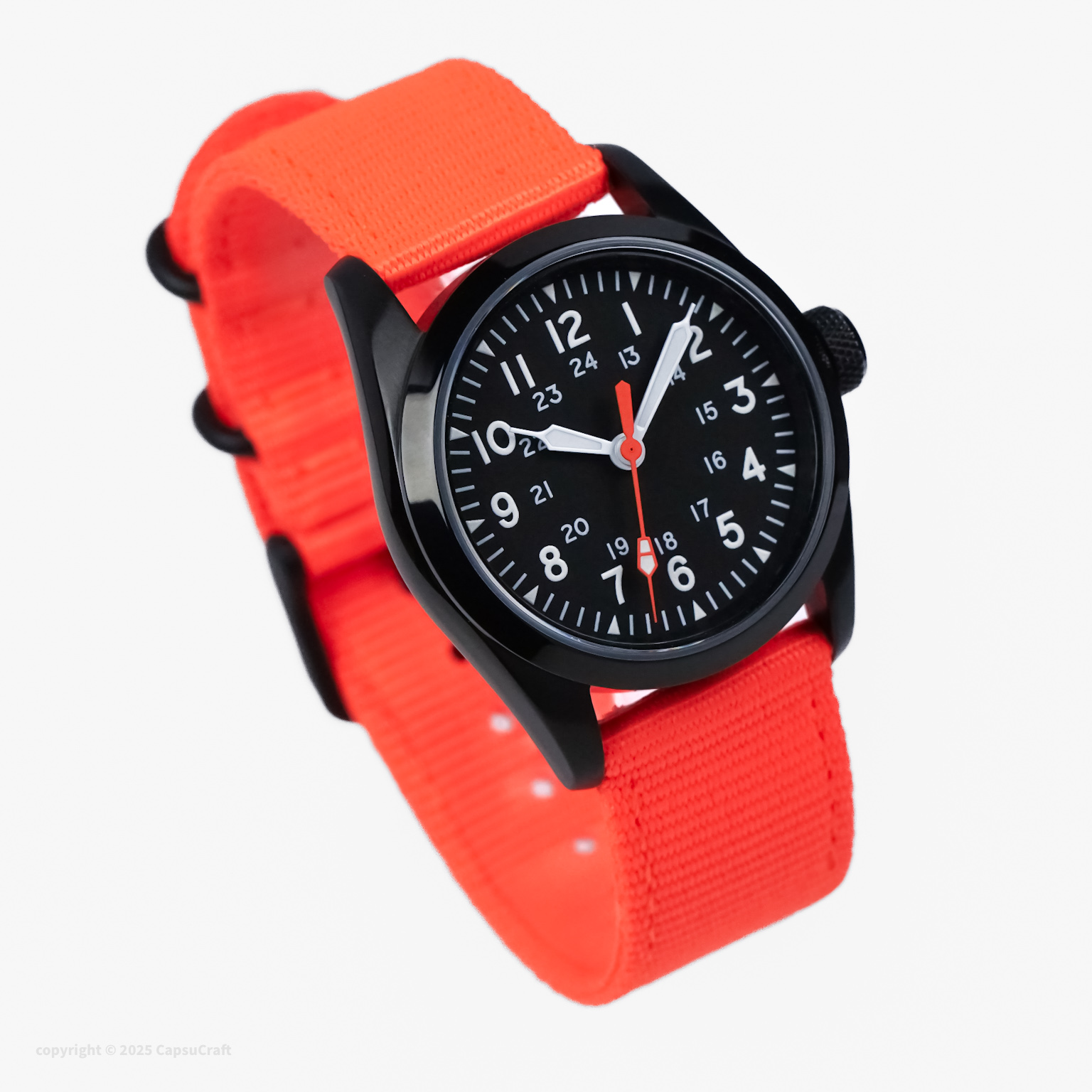 I had a day-glow orange strap from Timex that I never thought I’d use, but it made sense once I picked the bright orange seconds hand. I was also lucky that the brushed black PVD caseback perfectly matched the case.