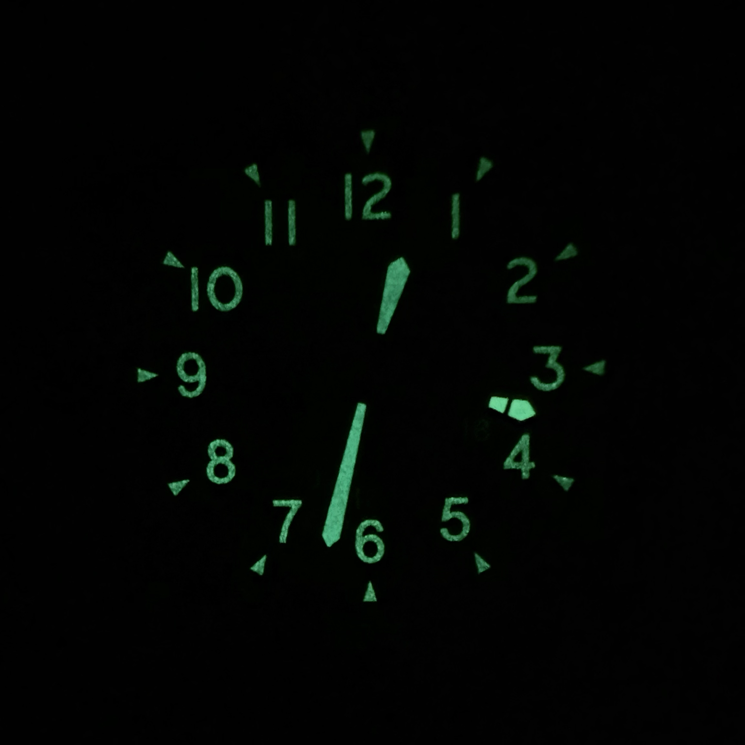 Lume on the dial and minute & hour hands is poor! The seconds hand’s lume is acceptable on it’s own. Together, the lume is poorly matched.